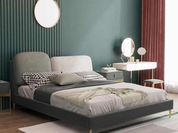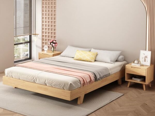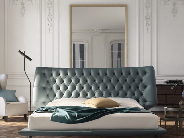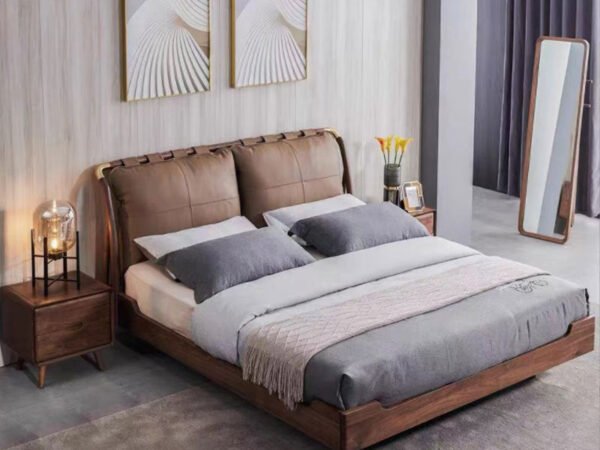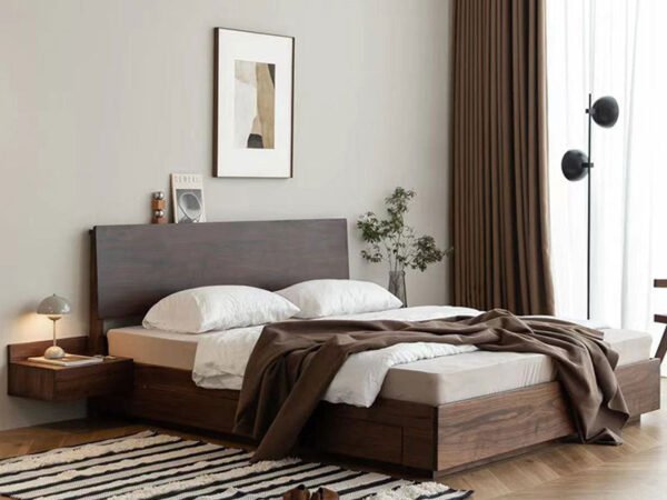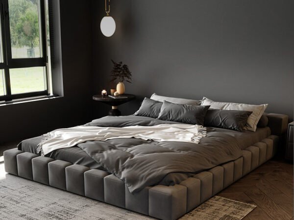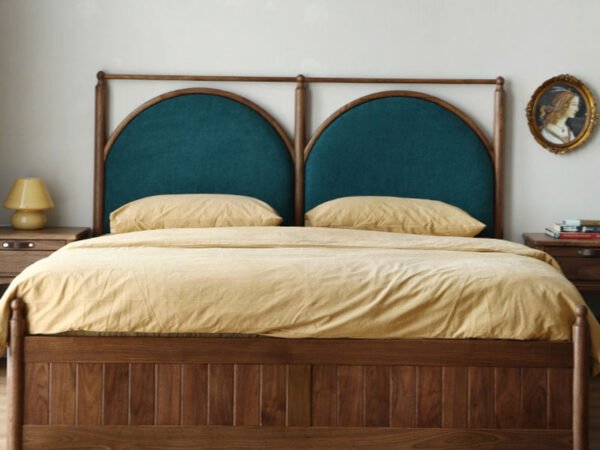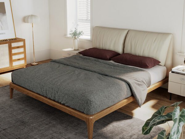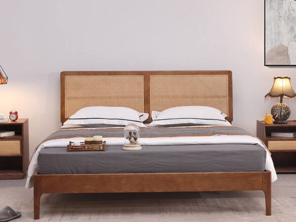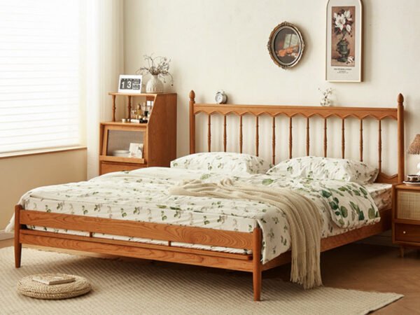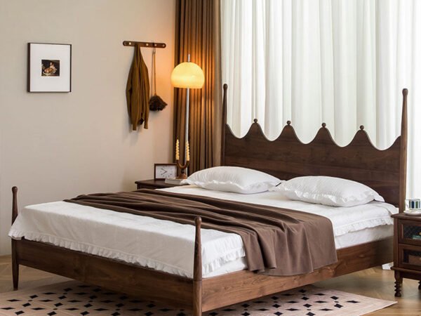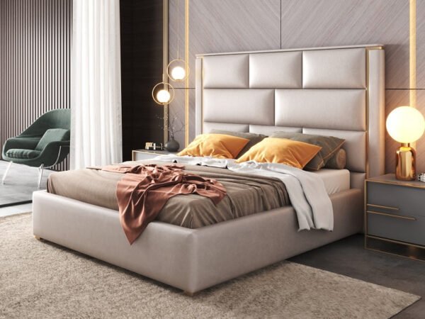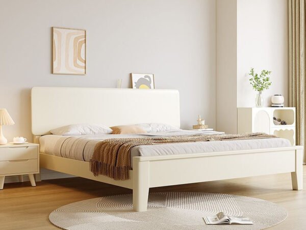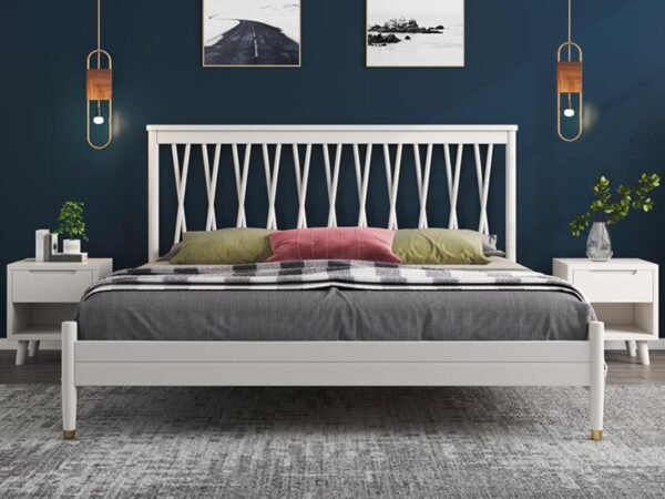 سرير ابيض بتصيمم كلاسيكي مع كومدينة
