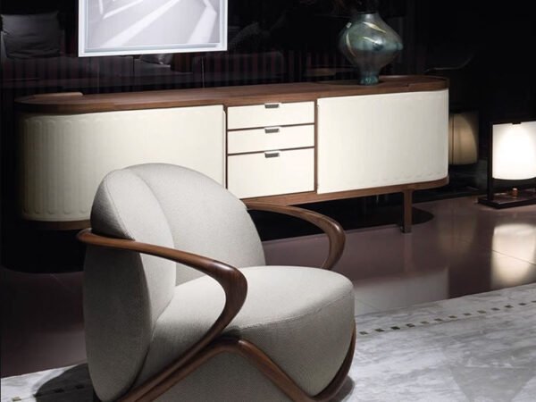 كرسي فوتيه دائري خشبي بتصميم أنيق