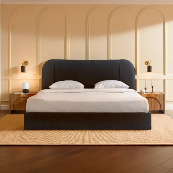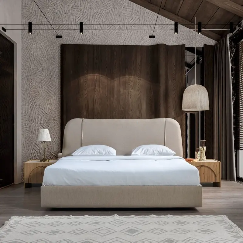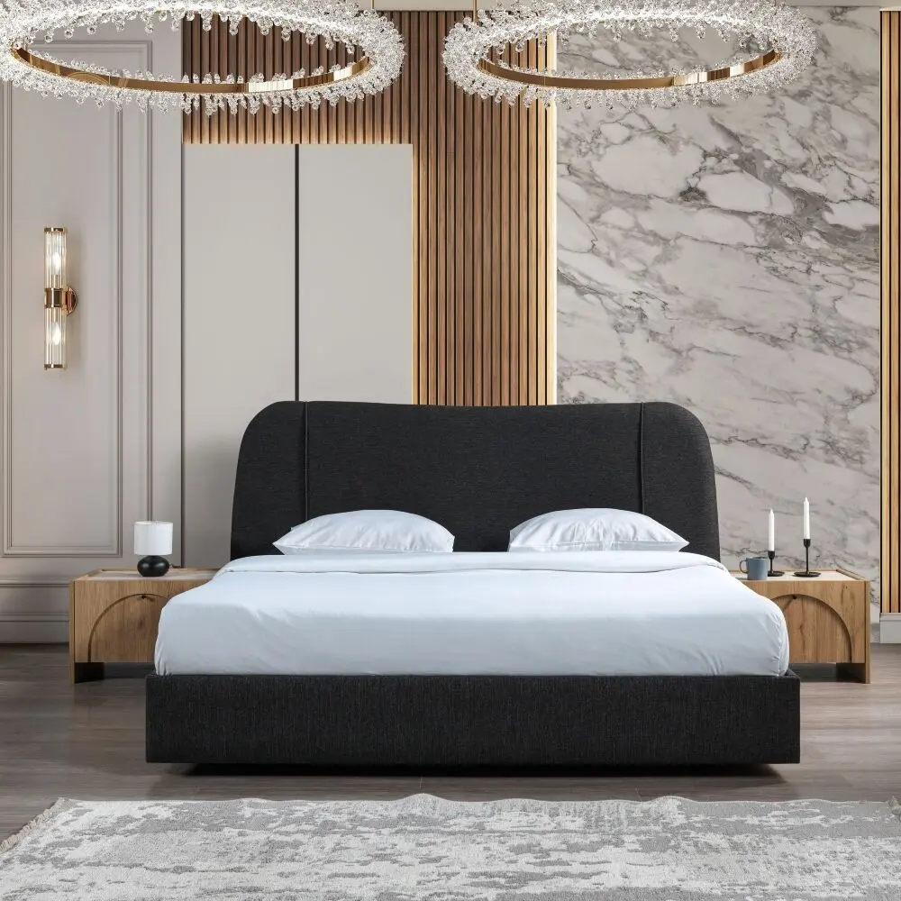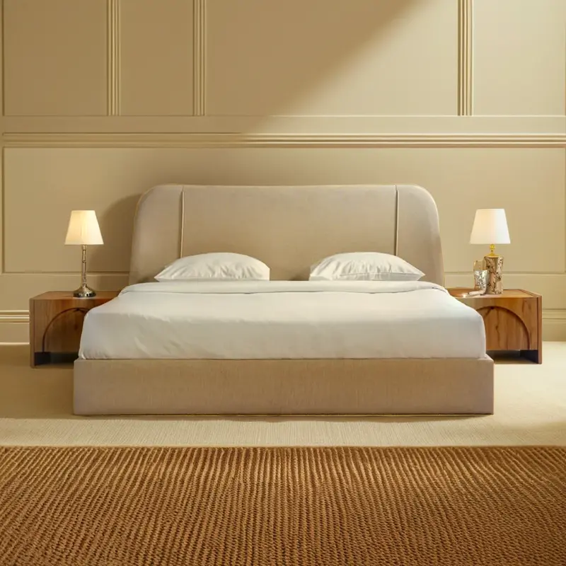 السرير يتميز بتصميم كلاسيكي مميز وظهر محشو بإسفنج عالي الكثافة، مغطى بقماش ناعم الملمس يمنح شعورًا بالراحة والدعم. يتيح لك هذا السرير الاسترخاء والنوم العميق وسط أجواء فاخرة.
