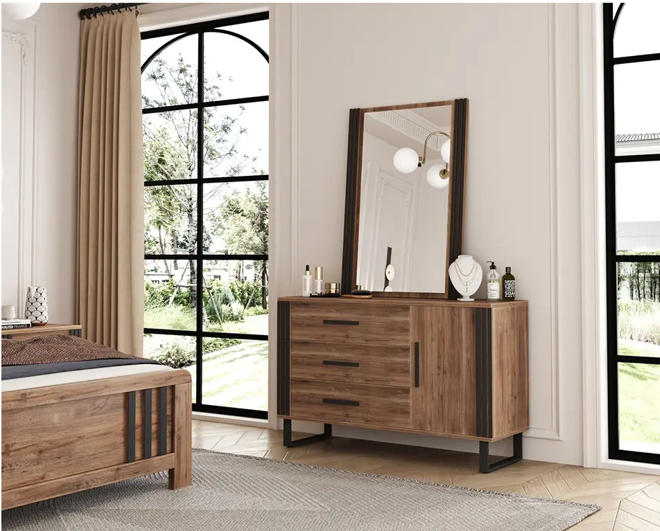 تسريحة متناسقة: تضيف لمسة من الأناقة والوظيفية، مع سطح عملي ومساحة تخزين كافية لأغراض التجميل والعناية الشخصية.