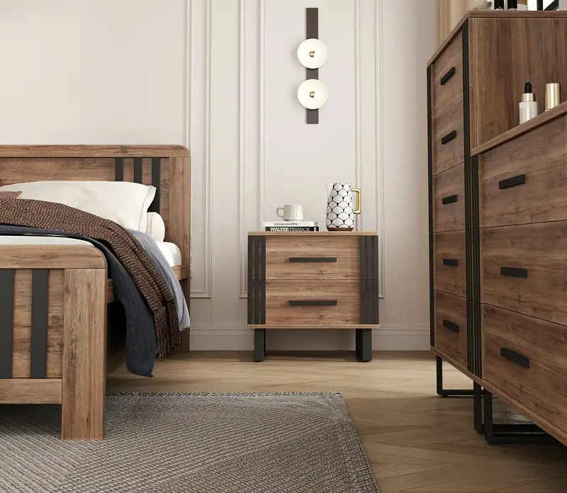 كمودينة جانبية أنيقة: تصميم عملي وراقي يُستخدم لحفظ الأغراض الأساسية بالقرب من السرير.