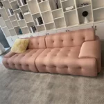 تتميز الكنبة بتصميم غير تقليدي يدمج بين الستايل العصري واللمسة الدافئة.