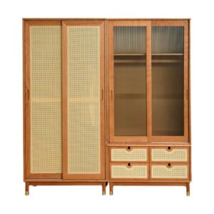 تتضمن الخزانة تفاصيل مصنوعة من زجاج عالي الجودة، يضفي عليها لمسة عصرية وراقية. الزجاج ليس فقط عنصرًا جماليًا، بل يتيح لك أيضًا رؤية محتويات الخزانة بطريقة أنيقة ومنظمة.