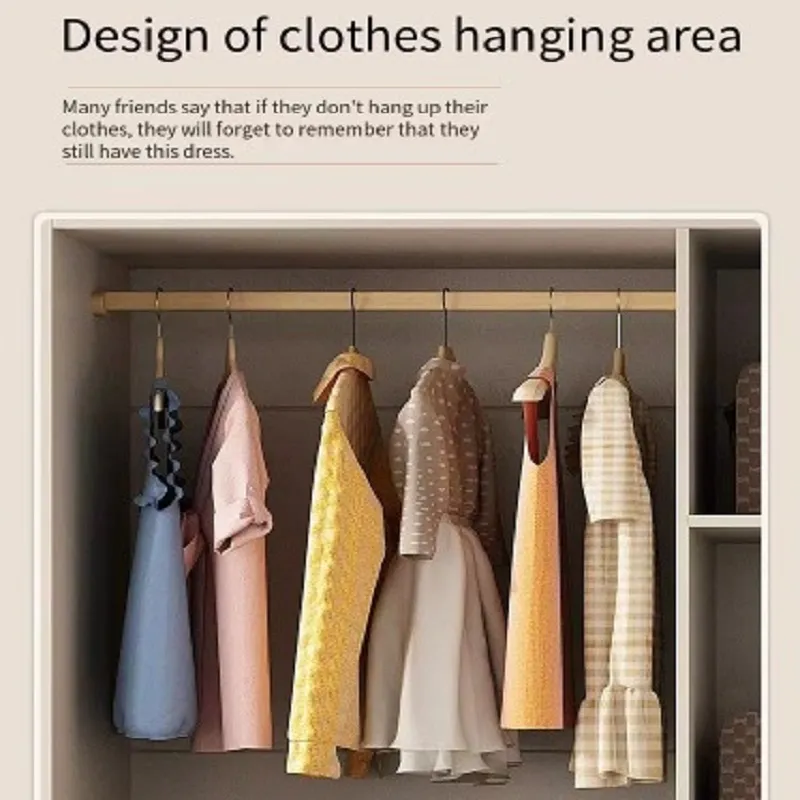 تمتاز هذه الخزانة بتصميمها الحديث الذي يضيف مظهرًا راقيًا إلى الغرفة، حيث تأتي بخطوط انسيابية ولمسات عصرية تضفي على المكان إحساسًا بالفخامة والرقي. تم تصميمها بعناية لتتناسب مع مختلف أنماط الديكور سواء الكلاسيكية أو الحديثة، مما يجعلها خيارًا مثاليًا لكل منزل سعودي يبحث عن الأناقة والتنظيم.