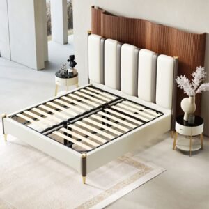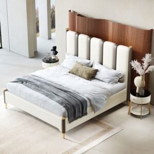 سرير جلد فاخر مضلع من الظهر لإضافة لمسة للبيت .