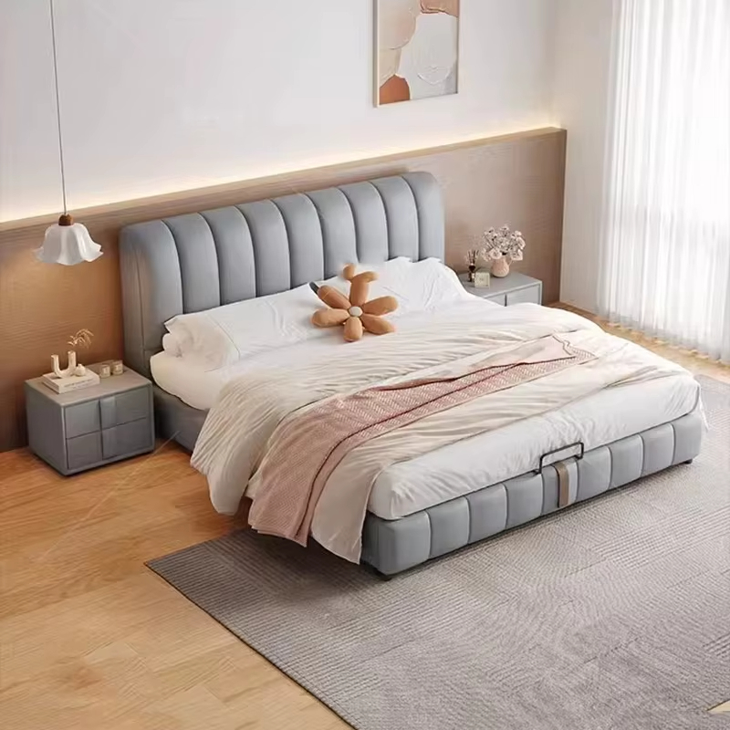أضف لمسة من الفخامة والراحة إلى غرفة نومك مع هذا السرير الفاخر المصنوع من خشب زان عالي الجودة، والمغلف بجلد فاخر، متوفر بعدة ألوان ومقاسات تناسب احتياجاتك.