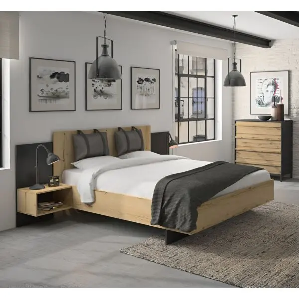 السرير بمقاس عملي يضمن راحة تامة، بعرض 200 سم، عمق 206 سم وارتفاع 100 سم، مثالي لنوم هادئ ومريح.