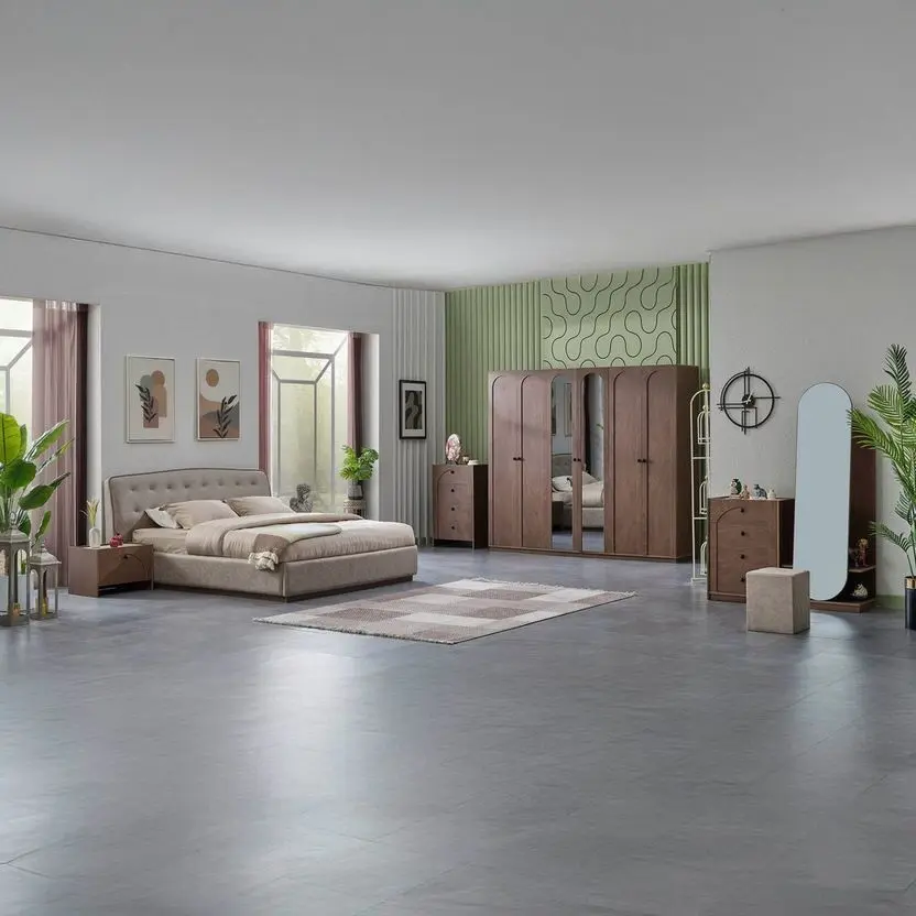 صُمّم كل جزء من هذا الطقم بعناية لتوفير أقصى درجات الراحة. من الظهر المبطن المريح للسرير، إلى أدراج الكمودينة والخزانة التي تعمل بسلاسة وسهولة في الاستخدام. إنه الطقم المثالي لأولئك الذين يبحثون عن جودة عالية وتصميم أنيق في آنٍ واحد.