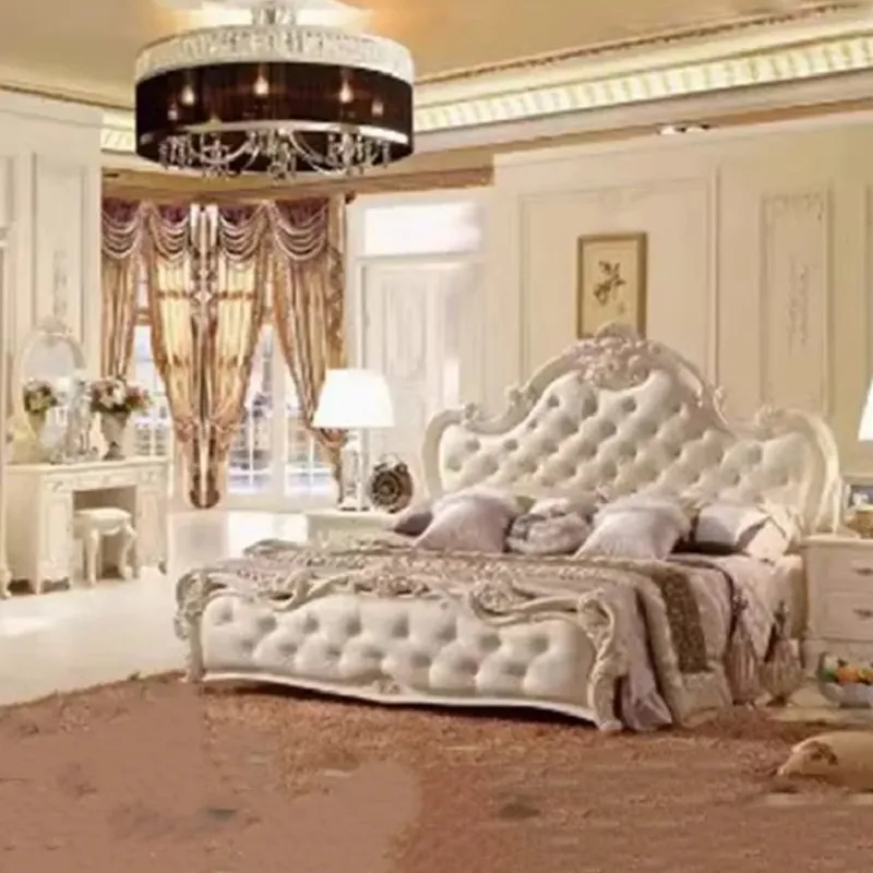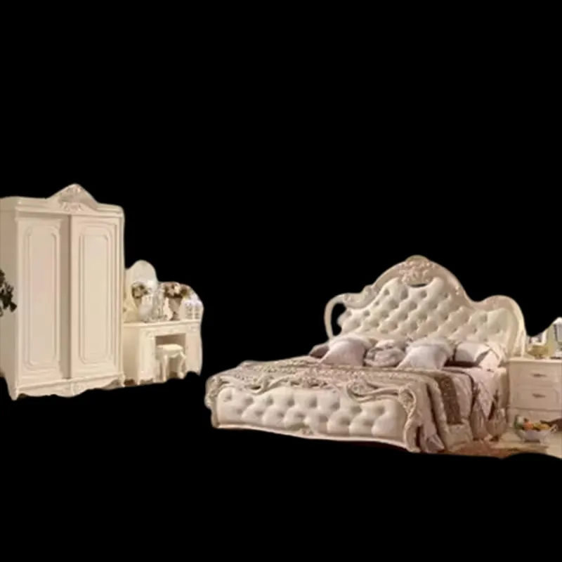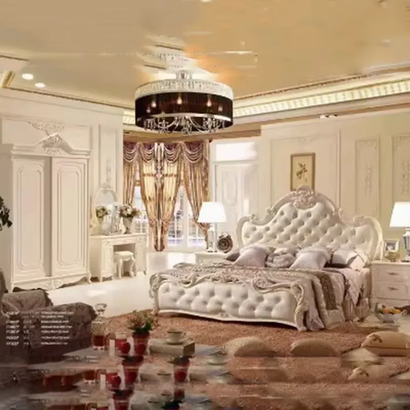 طقم غرفة نوم كلاسيكية فاخرة من متجر صوفا يجمع بين الأناقة والراحة، مصنوع من خشب هندسي وزان روماني عالي الجودة مع سرير مبطن بالإسفنج عالي الكثافة ومغطى بالجلد الفاخر. يحتوي الطقم على سرير، خزانة ملابس، تسريحة، وكومودينة بتصميم أنيق يضفي لمسة راقية على غرفتك. سهل التنظيف ومتين للاستخدام الطويل، مع ضمان سنتين ضد عيوب التصنيع داخل دول مجلس التعاون الخليجي