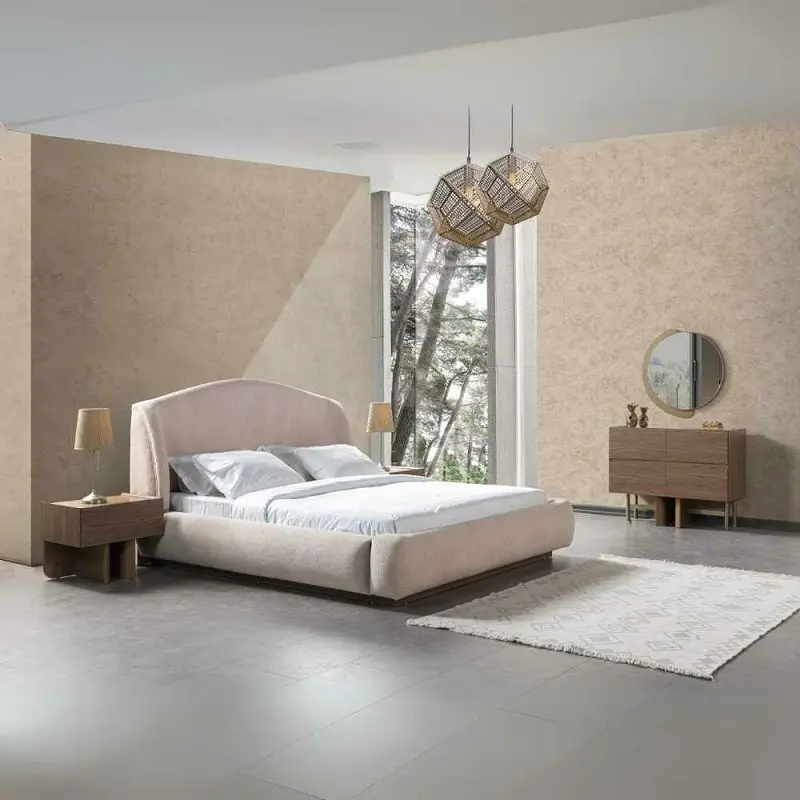 هيكل الغرفة مصنوع من خشب زان متين عالي الجودة، مما يمنحك قوة تحمل عالية وثبات طويل الأمد. يتميز السرير بحشوة داخلية من الإسفنج عالي الجودة، تضيف طبقة راحة إضافية وتجربة نوم مثالية، بينما يغطيه قماش فاخر بملمس ناعم ومظهر أنيق ينسجم مع مختلف أنماط الديكور الداخلي.