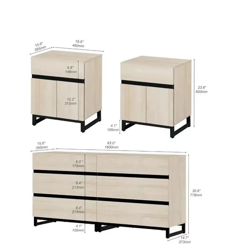 تم تصنيع هيكل الغرفة من الخشب الهندسي المتين وخشب الزان الروماني عالي الجودة المعروف بمتانته وصلابته وطول عمره، ليضمن لك استخداماً يدوم لسنوات طويلة دون تأثر بالعوامل اليومية. كما تم الاهتمام بأدق التفاصيل من تشطيب المقابض حتى ملمس السطح، لتشعر بالفخامة في كل زاوية من غرفتك.