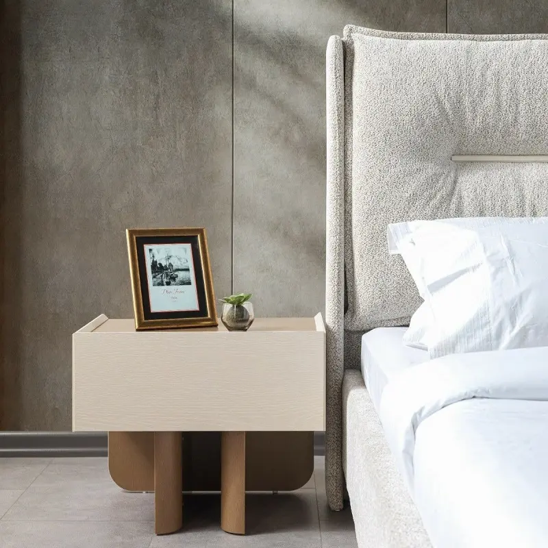 يغطي التنجيد قماش فاخر ومتين، يضفي ملمسًا ناعمًا ومظهرًا أنيقًا.